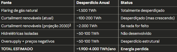 Identifique onde sua empresa desperdiça energia (flaring, curtailment, capacidade ociosa)